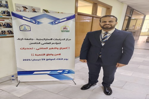 تدريسي من جامعة القاسم الخضراء يشارك في المؤتمر العلمي الخامس للتغير المناخي " والمقام بجامعة كربلاء